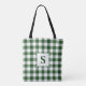 Bolsa Tote Padrão de Gingham Branco e Verde do Monograma Mode