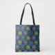 Bolsa Tote Padrão de margarida azul e verde