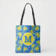 Bolsa Tote Padrão Floral de Limões Amarelos e Azul de Summery