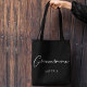 Esta bolsa preta chic e simples para padrinhos apresenta seu nome sob tipografia branca elegante. Personalize esses presentes elegantes e modernos para a festa de casamento para os padrinhos do noivo para a despedida de solteiro.