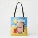 Só uma fatia de pão a ser torrado na praia. Ele tem uma balde vermelha para construir um castelo de areia e o mar azul legal se ele quer uma natação. O céu é azul com um grande sol amarelo feliz com a estranha nuvem fluffy a derivar.