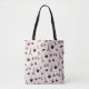 Tres Chic! A bolsa de inspiração parisiense apresenta um padrão alover em cor-de-rosa e preto, cor-de-rosa e preto, com silhuetas de torre Eiffel, croissants, macarons, bicicletas, rosas, pássaros e xícaras de café.