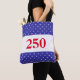 In celebration of the USA's 250th anniversary, 250 appear in red letters. Can be customized with desired text. A blue background with white stars is above and below a white stripe.