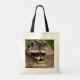 Um saco de tote com uma fotografia de um guaxinim fofo e curioso descansando seu rosto em um tronco de madeira. Adorável.