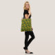 Padrão floral sem costura com pequenas flores amarelas e pontos turquesas sobre fundo verde escuro.