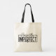 A stylish black and white typography design featuring the inspirational phrase “Perfectly Imperfect” with a mix of elegant cursive and bold block fonts, framed neatly with a small heart accent.