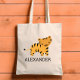 Esta bolsa de tote das crianças para amantes de os animais mostra uma bela ilustração de um tigre. Personalize com o nome do seu filho em letras negras. Faz uma bolsa de excelente para rapazes ou raparigas!