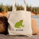 Esta bolsa de tote das crianças para amantes de os animais apresenta uma ilustração fofa de um sapo verde. Personalize com o nome do seu filho em letras negras. Faz uma bolsa de excelente para rapazes ou raparigas!