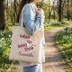 Hop into Easter fun with this charming Personalized Follow the Bunny Trails Tote Bag. Featuring whimsical pink lettering that reads "Follow the Bunny Trails" adorned with adorable bunny footprints and colorful candy accents, plus a customizable name in elegant script below. This playful design captures the magic of Easter egg hunts and springtime adventures, making it a perfect accessory for carrying treats, books, or everyday essentials.