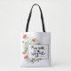 Tote bag with inspirational quote scripture depicts a floral watercolor wildflower design with simple red poppies and greenery. It features an encouraging Christian quote from Bible Verse Philippians 4:6-7, "Pray More Worry Less." The verses are printed in full on the back, "Pray about everything; tell God your needs... If you do this, you will experience GOD'S PEACE which is far more wonderful than the human mind can understand."