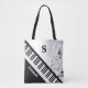 Bolsa Tote Piano Moderno Notas de Música Monograma Nome Preto
