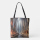 Pilares de pedra alta suportam um teto terrestre sobre uma comunidade subterrânea de pessoas que habitam uma enorme caverna, com um rio, passadeiras e fonte de energia.