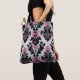Sophisticated Damask style tote bag in Pink Black, and Silver.