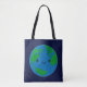 Nossa feliz casa no espaço, planeta Terra, contra um fundo de estrelas e galáxias.