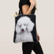 Um adorável poodle branco que faz alguém sorrir nesta maravilhosa bolsa de tote.