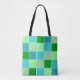 Beachy Blue e Green Squares Olhos pegando saco de tote desenhado com cores confortáveis, de praia, de padrão quadrado verde e azul. Por celeste@khoncepts.com #blueandgreensquares