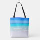 Uma bolsa personalizada de tote de praia. Projetado com uma foto de uma praia tropical arenosa. Um belo mar de turquesa à distância e águas cristalinas acariciando uma praia arenosa. Um céu azul brilhante no fundo.