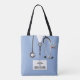 Saco único de prenda de enfermeira com esfregões hospitalares, canivete suíço engraçado e estetoscópio. Para personalizar editar texto para adicionar nome e credenciais de enfermagem.