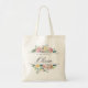 Saco de mão personalizado para sua menina de flores com nome personalizado e design de buquê de rosas em rosa e dourado em aquarela.