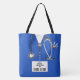 Cartera "enfermeira" médica única com scrubs azuis criativos de hospital e estetoscópio. Edite o texto para adicionar o nome da sua enfermeira favorita ou estudante de enfermagem.
