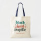 A Apreciação do Professor Personalizada Tote Bag Lê "Ensinar Amor Inspirado" em uma letra ousada e divertida, destacada com corações bonitos desenhados à mão e personalizada com o nome do seu professor favorito.