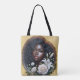 Para celebrar o Mês da História Negra, eu gosto de homenagear mulheres de cor que têm uma pele mais profunda de melanina. Anos atrás, uma mulher negra tinha que ter um tom de pele mais leve para ser considerada como jogada em filmes. Se uma pele mais escura estivesse num filme, ele ou ela era cozinheiro, empregada doméstica ou algum tipo de função servente. As coisas de Deus obrigado mudaram para melhor. Ela merece ser reconhecida como uma mulher negra bonita, inteligente, inteligente e educada. Esta bolsa de tote tem uma bela senhora de cor com lindas flores de rosas brancas, lírios e cravos.