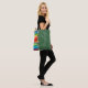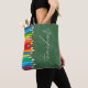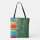 Uma bolsa tote personalizada para professores com um fundo de quadro verde e lápis coloridos e "professor" em letra cursiva. A toalha pode ser personalizada com o nome do professor e data estabelecida nos lápis.