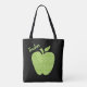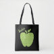 Sacola de tote de um professor Whimsical, com gráficos de uma maçã de impressão leopardo verde, sobre um fundo preto. O texto personalizado verde lê Professor e pode ser personalizado para ler o que você quer.