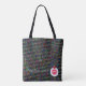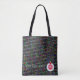 Neste Tote Bag é um ditado original, e trabalho de arte e design por ZoeSPEAK, um slogan para professores que lê "Professores servem COMIDAS PARA PENSAMENTO". As palavras "Professores ao serviço" encontram-se em caracteres itálicos verde de maçã, que permitem ilustrar uma placa branca de janto com as palavras "COMIDA PELO PENSAMENTO" em letras vermelhas, curvas para encher o centro do prato. No topo da placa está uma maçã vermelha brilhante com uma folha verde. O fundo do conselho é um padrão colorido, principalmente cinzentos escuros, mas espalhado por todo o lado com vermelhos, azuis e verdes. As letras do alfabeto, em bonés e minúsculas, mais os números de zero a nove rodam diagonalmente em branco puro sobre o fundo.
