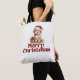 Sobre a bolsa de tota de Natal, com uma confortável tira no ombro de 28 polegadas de comprimento. O revestimento de dentro é laminado preto para suporte extra. Um cachorrinho de Natal bonito é fotografado em ambos os lados da bolsa.