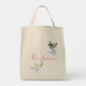 Bolsa Tote Púrpura mole e flores azuis, nome bonito das aves