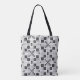 Esta bolsa de tote tem um quebra-cabeça de palavras cruzadas de meio século com símbolos atômicos retrorreflectores, rajadas de estrelas e textura impressão de notícias. Um padrão de excelente para qualquer um que ame designs atômicos modernos ou quebra-cabeça de palavras cruzadas. Você pode fazer o padrão nesta bolsa de tote maior ou menor.