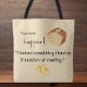 Esta bolsa é para o tipo de felicidade que cheira a pão de banana quente e tem gosto de "nenhuma para você". É bonito, aconchegante, e totalmente indesculpável — assim como você, com a frase que diz: Você parece mais feliz! Acabei de fazer algo que não tenho intenção de compartilhar." Adicione o seu nome ao fundo para que todos saibam exatamente quem não pedir uma peça.