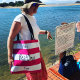 Branca Branca Branca Vermelha Cinzenta Branca Personalizada Divertida. Bolsa de tote do Melhor Dia em listras brancas e rosa quente. O texto está em uma fonte divertida e pode ser alterado para seu nome facilmente. As palavras podem ser removidas se você quiser.