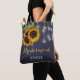 Mala de tote da na moda/madrinha de casamento/menina de flores, elegante e russa, na meia-noite, marinho, quadro azul, apresentando belos buquês de girassol de ouro amarelo e cordas de luzes cintilantes. Personalize-o com o nome da dama de honra na frente e com os nomes da noiva e noiva e a data do casamento no verso. — Preencha suas informações nos pontos, Você pode optar por personalizá-las mudando ainda mais as fontes e as cores das letras. — O saco de tote é adequado para elegantes casamentos de verão ou outono em casamentos rústicos. — Se você precisar de assistência para personalizá-lo, por favor, entre em contato comigo!