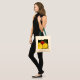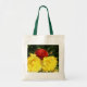 Saco de algodão natural e verde-caçador a 100% com uma imagem de uma aquarela de lindos Ranunculus amarelos e vermelhos.