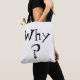 Por quê? Este é um saco de totes reversíveis, preto e branco, divertido e criativo, com uma grande pergunta "porquê?" seguido de um grande ponto de interrogação. Um lado é preto e branco, o outro é branco e preto. Às vezes só queremos saber por quê... (Provavelmente, será-lhe perguntado "porquê?" por todos que te veem carregando...)