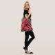 Sua escolha de saco de na moda ou de corpo cruzado com um impressão que mostra a foto de uma grande, vermelha, variegada flor de Dahlia. Um design floral adorável! Selecione o estilo e o tamanho da sua bolsa.