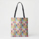 Esta bolsa de tote tem uma design moderna do século médio de retângulos feitos de listras com uma esteira branca sobre elas.