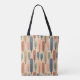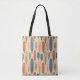 Esta bolsa de tota tem um design moderno do século médio de longas ovais em pêssego, verde, azul, lacre e castanho claro com linhas pretas com círculos nas extremidades.
