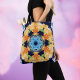 Bolsa Tote Retro Mandala Amarelo Azul e Laranja