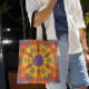 Bolsa Tote Retro Mandala Flor Amarelo Laranja e Púrpura