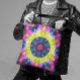 Bolsa Tote Retro Mandala Flor Azul Amarelo e Rosa
