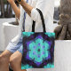 Bolsa Tote Retro Mandala Flor Azul Roxo e Verde