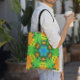 Bolsa Tote Retro Mandala Flor Verde Amarelo e Azul