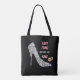 Esta bolsa de tote divertida daria um presente maravilhoso à noiva na Festa de solteira dela! Ele apresenta um grande calçado de salto alto em gema de diamante e uma imagem de dois anéis de casamento de ouro entrelaçados. O texto, em rosa e branco, diz "ÚLTIMO VOO antes do ANEL". Ambos os lados da bolsa têm a mesma imagem.