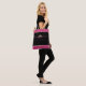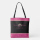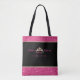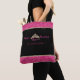 Este saco de totas é apresentado em cor rosa quente suave e banda brilhante dourada, na parte superior e inferior, com alças pretas. Saco preto e em ambos os lados é uma coroa atraente com pedras cor-de-rosa sujo e quente. O texto diz " Future Miss Rodeo em treinamento". Personalize este saco ou comprar de tote conforme projetado.