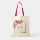 Escritura inspiradora Saco de tota de Natal mostra a cor d'água vermelha e rosa Poinsettias, bagas e verde em uma elegante armação de ouro. Ele apresenta uma parte de uma Bíblia encorajadora Verse Romans 15:13, "Que Deus da Esperança te preencha com toda a alegria e paz que você confia nele." *