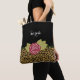 Uma bolsa de tota marrom-escura-leopardo-chic decorada com uma rosa vermelha elegante. Faça este na moda animal impresso e um design floral vermelho especial ao adicionar o nome da sua garota favorita.
