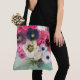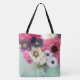 BOLSA TOTE ROSAS BRANCAS ROSA ,FLOR ANÊMONE ,AZUL TURQUESA